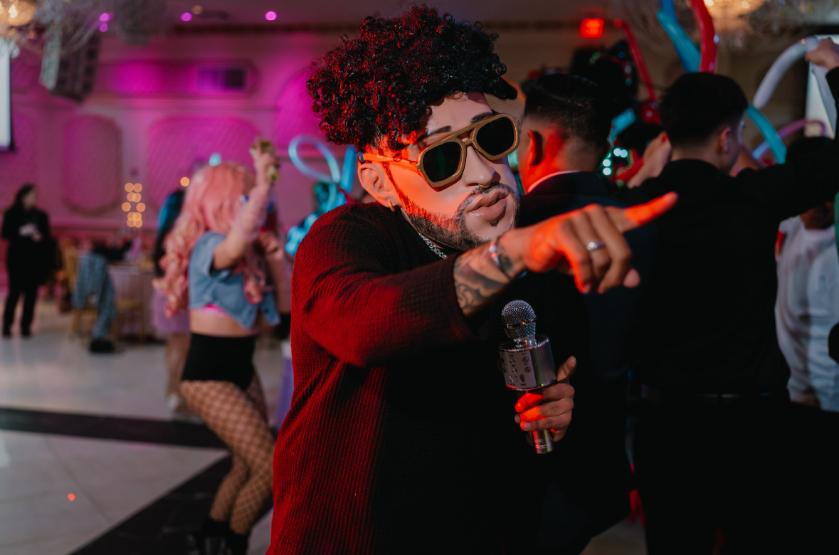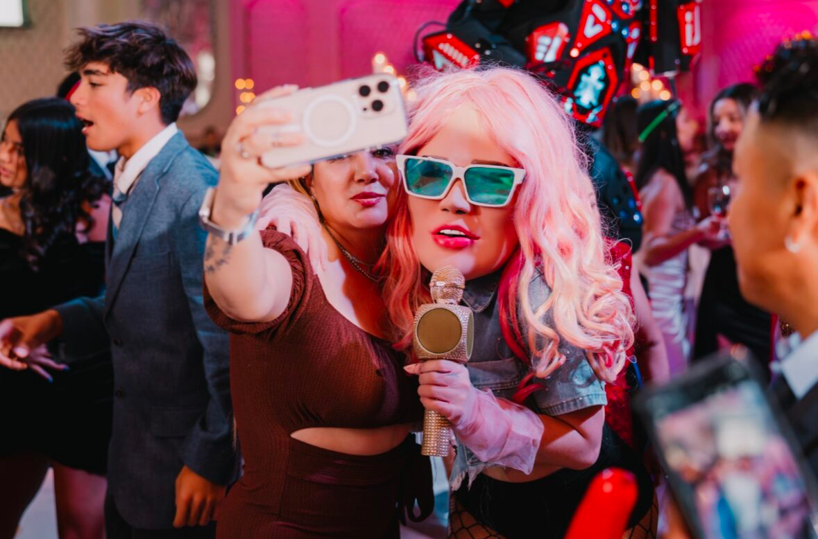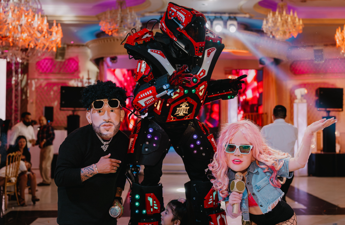 Sonido Aereo, Luces Roboticas, Dj’s & Mc’s bilingues, La mejor hora loca, Personajes: Karol G, Bad Bunny, Robots leds, 360 photobooth…